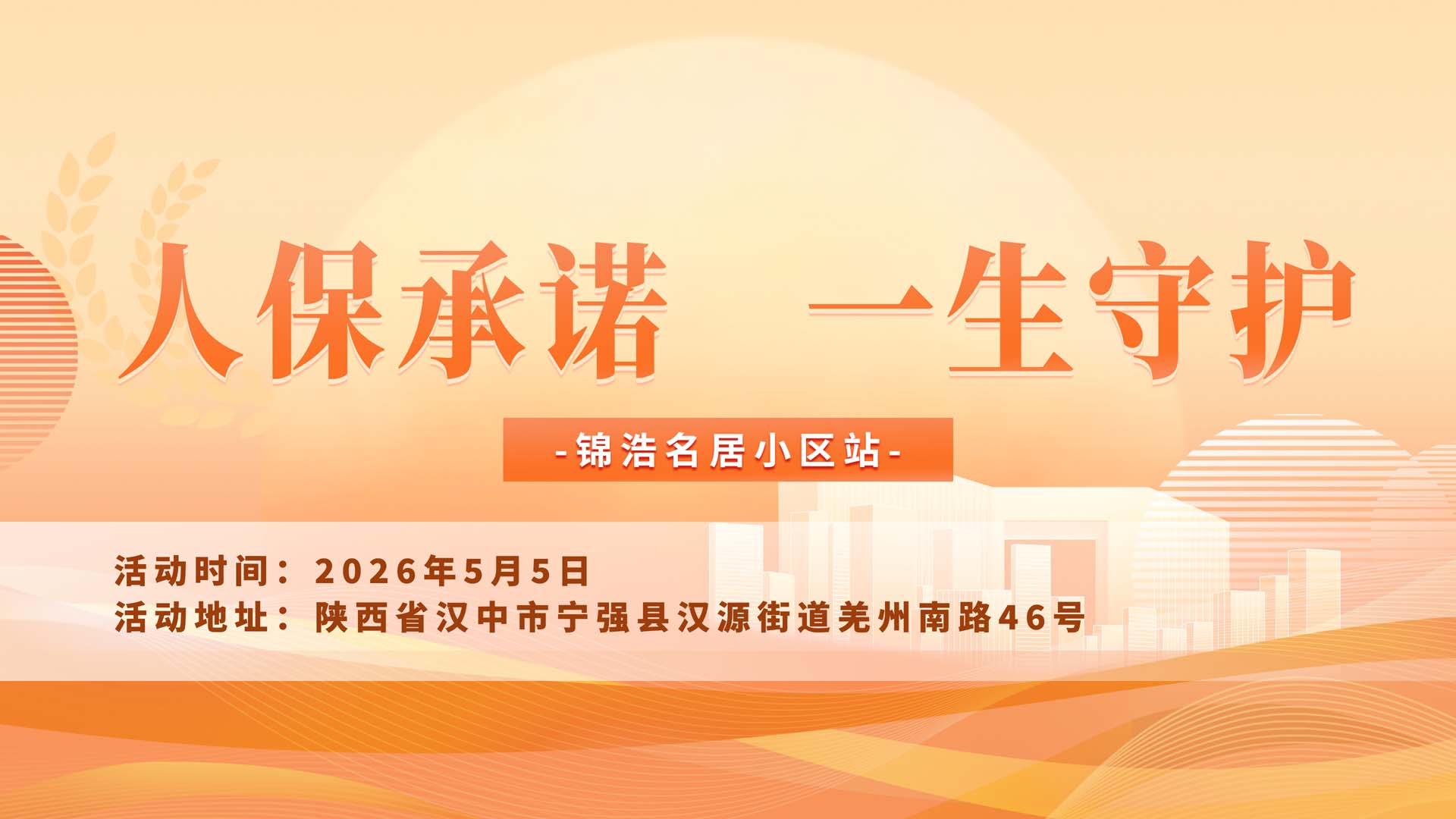 2026年5月5日,中国人保将走进锦浩名居小区开展 “人保承诺,一生守护” 活动。活动现场设置咨询台,资深保险顾问一对一为您解读车险条款、测算续保费用、排查保障缺口,针对小区车主高频用车场景推荐适配保障计划,让您投保更划算、用车更舒心。